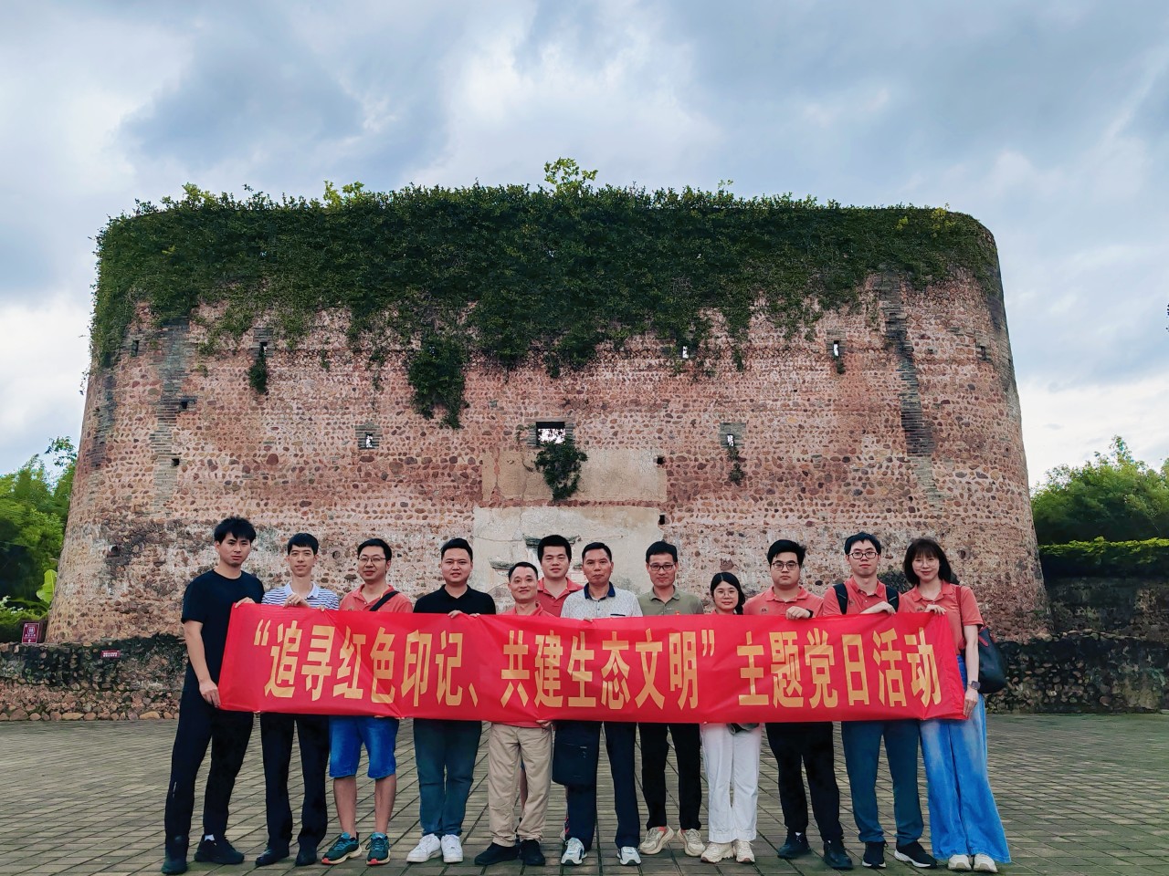 參加活動的黨員同志們一同參觀了廣東省委機關(guān)舊址——紅圍,通過觀看宣傳欄里留下的珍貴歷史照片和文字記載的歷史變遷,了解這座近200年歷史的圍樓,歷經(jīng)歲月的滄桑與戰(zhàn)火的洗禮至今仍然屹立不倒,感受在那血雨腥風(fēng)的歲月里,中共廣東省委從這里發(fā)出的紅色電波,保持著與黨中央的密切聯(lián)系,指揮南方地區(qū)的抗日戰(zhàn)爭工作。隨后,大家在紅圍前,面對黨旗莊嚴(yán)地舉起右拳重溫了入黨誓詞,緬懷老一輩革命先烈的崢嶸歲月,感悟先輩不怕犧牲的英雄事跡,激發(fā)黨員奮斗精神和干事創(chuàng)業(yè)動力。